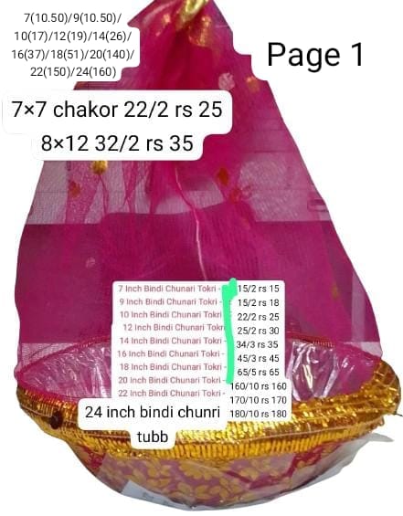 Bindi Chunri Tokri Sizes-